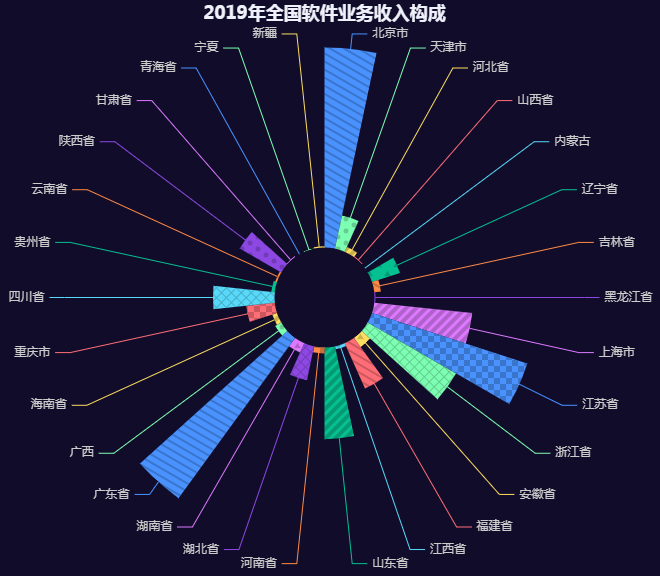 案例一 2019年全国软件业务收入地区构成